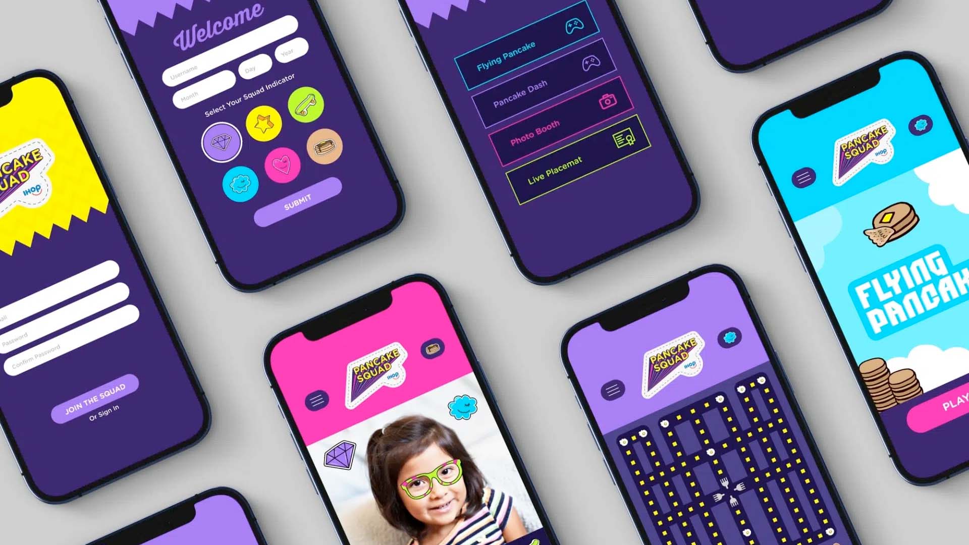 NM+U created The Pancake Squad Kids Loyalty Program, a multi-faceted initiative that brought together in-store activations and a feature-rich mobile app. Designed to delight kids and encourage family interaction, the app included augmented reality, interactive games, a photo booth, and a variety of entertaining content. By giving kids a fun squad to join and experiences to share, the program not only created meaningful memories but also fostered organic social media marketing opportunities and long-term brand engagement.